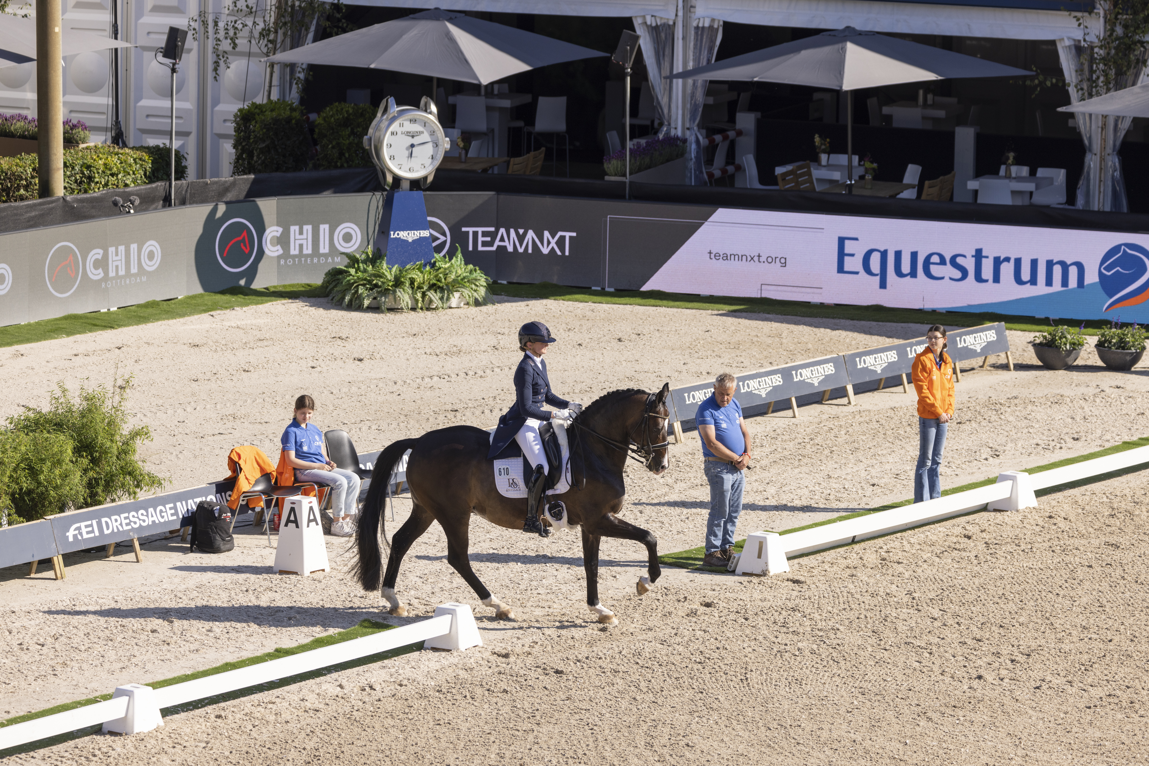 “Ik heb nog niet super veel grote wedstrijden gereden, eigenlijk kom ik net kijken op dit niveau. Vorig jaar heb ik het CHIO Rotterdam voor het eerst heel bewust als deelnemer mee kunnen maken. Ik heb het toen super naar mijn zin gehad, mede door het heerlijke weer, maar ook zeker door de sport en de gezellige sfeer. Ook wil ik graag zeggen dat ik alles super georganiseerd vond. Als ik op concours ben, blijf ik het liefste bij mijn paarden in de buurt. We gaan 's avonds wel eens in de stad eten, maar ik heb op wedstrijd een bepaalde focus en dan voelt het het beste als ik dicht bij de paarden ben.”